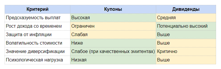 Купоны и дивиденды — это не про «лучше» или «хуже». Это про совпадение инструмента с инвестором.